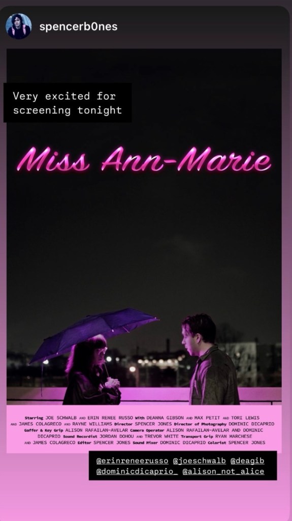 April 25, 2025August 19, 2025 Recently shot a short film “Miss Ann-Marie” Share this: Click to share on Facebook (Opens in new window) Facebook Click to share on LinkedIn (Opens in new window) LinkedIn Click to share on Threads (Opens in new window) Threads Click to share on Bluesky (Opens in new window) Bluesky Related